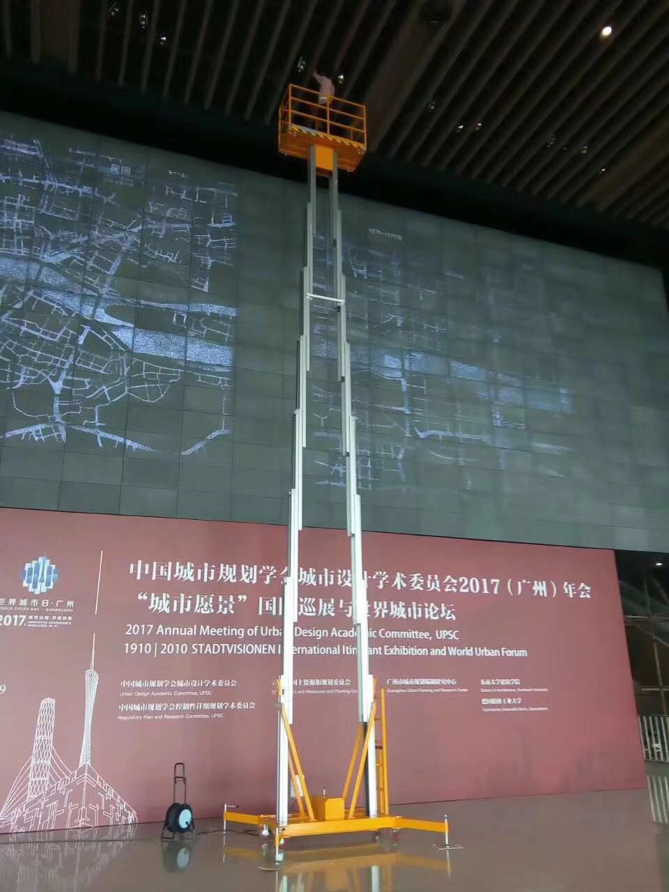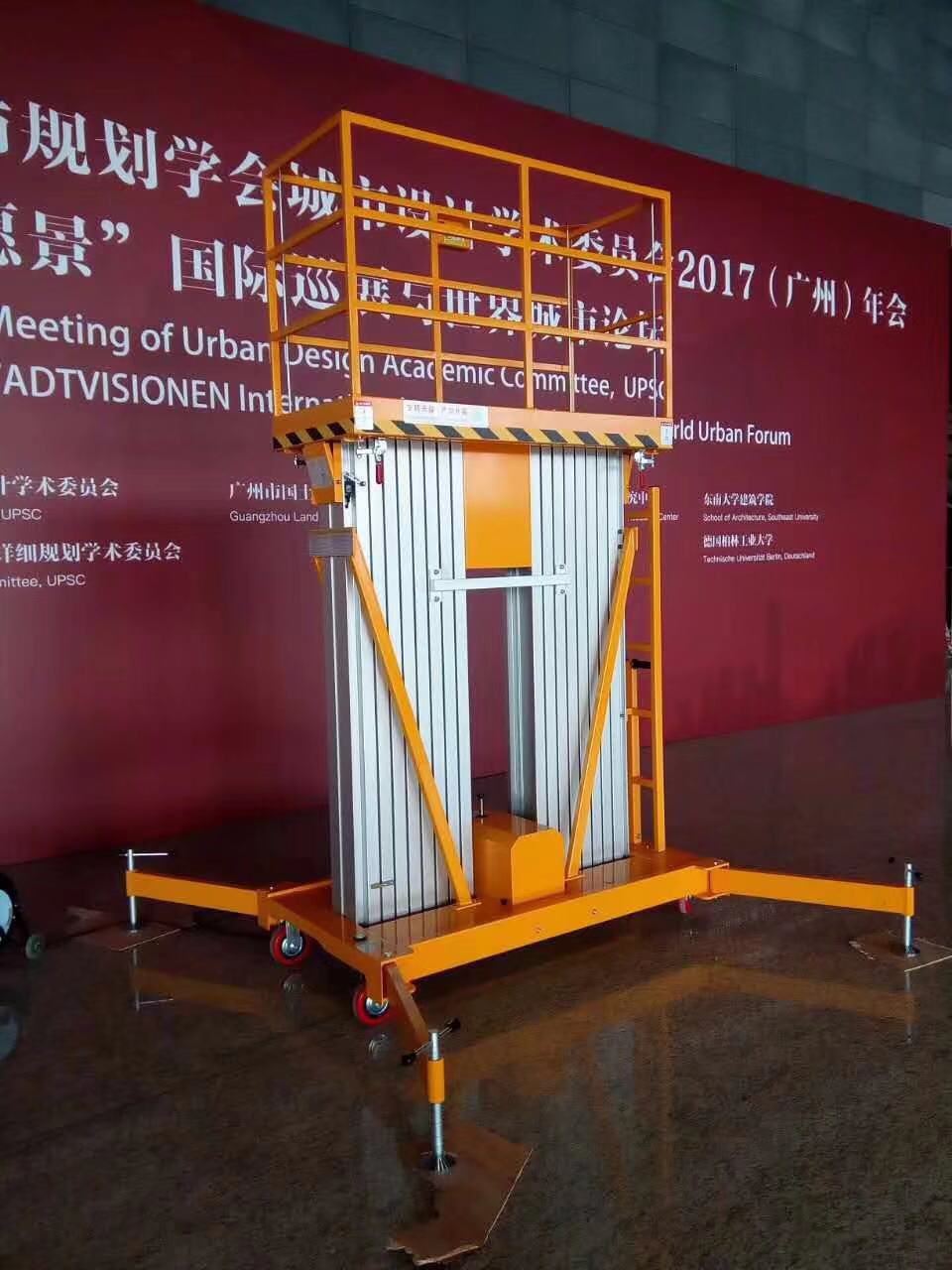 双柱铝合金升降机:双桅柱支撑作业平台同步升降,支退结构同单桅柱式平台,具有超大的载重量和优的工作稳定性。整体升降式护栏装置,强度好,运输时大幅度地降低整机高度,装卸十分方便,通过一次升降即可完成装配或拆卸。该升降机承载能力强,适合于两人(可携带一定的重量工具和材料)同时登高作业;还可根据不同环境订制成各种非标产品,以满足不同需要。